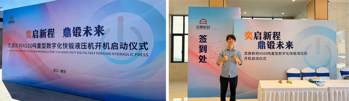浙江奕鼎新材4500噸重型數(shù)字化快鍛液壓機開機大吉